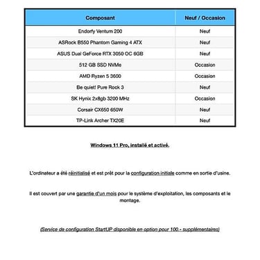 Les ventes s’effectuent exclusivement en remise en main propre, avec paiement direct à ACKFIX.
